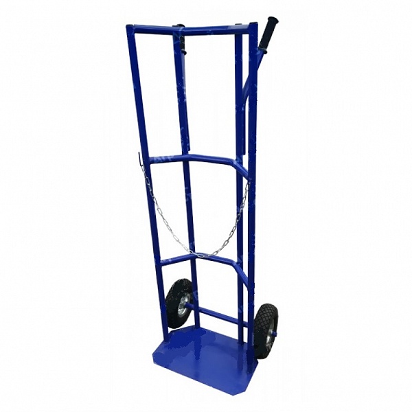 Двухколесные тележки изготавливаются из прочного стального профиля, толщиной от 1,5 мм, круглой бесшовной трубы, диаметром от 20 мм и выше, в зависимости от эксплуатационных характеристик, листового металла, толщиной 3 мм; ось колес исполняет металлический пруток d - 20 мм. Оригинальная конструкция крепления ручки и несущей рамы позволяет перемещать тяжелый груз без деформации несущей платформы. Двухколесные тележки комплектуются литыми или пневматическими колесными опорами.
