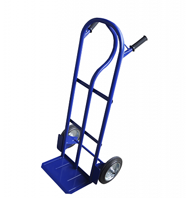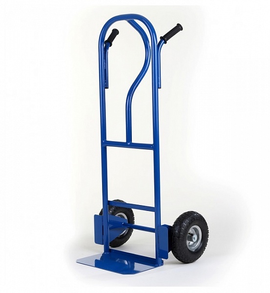 Двухколесные тележки изготавливаются из прочного стального профиля, толщиной от 1,5 мм, круглой бесшовной трубы, диаметром от 20 мм и выше, в зависимости от эксплуатационных характеристик, листового металла, толщиной 3 мм; ось колес исполняет металлический пруток d - 20 мм. Оригинальная конструкция крепления ручки и несущей рамы позволяет перемещать тяжелый груз без деформации несущей платформы. Двухколесные тележки комплектуются литыми или пневматическими колесными опорами.
