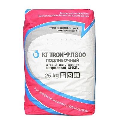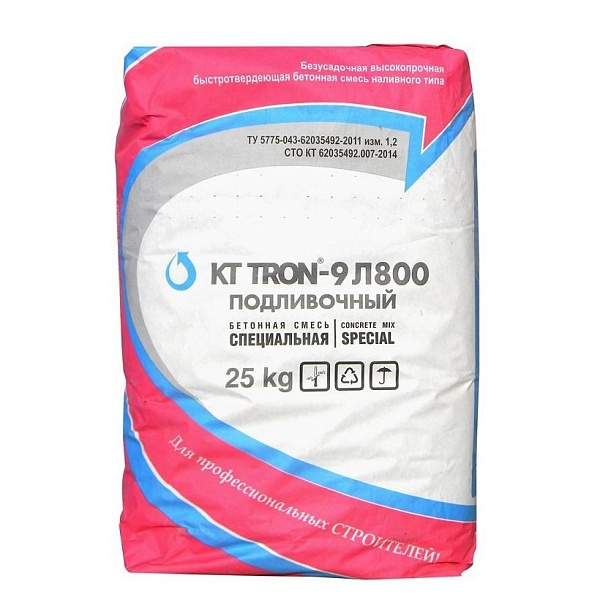 КТтрон-9 Л800 подливочный – сухая смесь, состоящая из цемента, минерального заполнителя, армирующего волокна и модифицирующих добавок. При смешивании с водой образует безусадочный, самоуплотняющийся литьевой раствор с высокой степенью адгезии к арматуре и ремонтируемому основанию. После отверждения приобретает цементно-серый цвет.