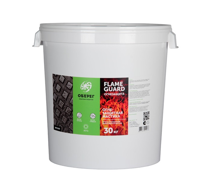 Конструктивная огнезащитная мастика ОБЕРЕГ FlamеGuard - готовая к применению, однокомпонентная мастика на водной основе. Мастика предназначена для снижения пожарной опасности и повышения пределов огнестойкости железобетонных конструкций и сооружений различного назначения как внутри помещения так и снаружи под навесом.